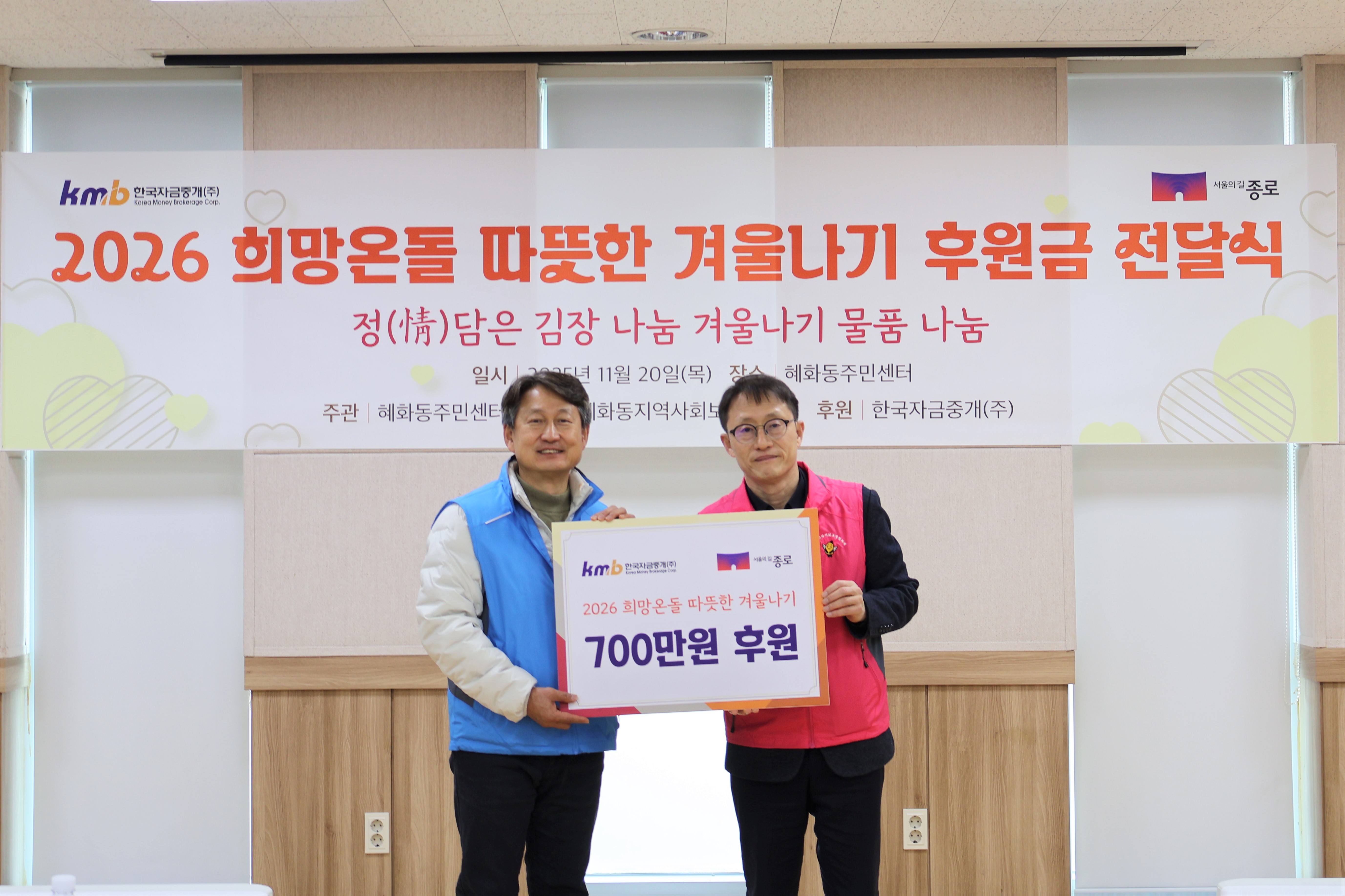 이번 후원은 ‘2026 희망온돌 따뜻한겨울나기 사업’의 일환으로 추진된 사회공헌 활동이다. 서울사회복지공동모금회에 기탁한 후원금은 혜화동주민센터가 절차에 따라 신청해 종로구 취약계층을 위한 사업에 활용되었다.